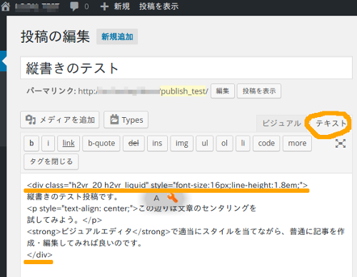 WordPress でとりあえず投稿記事本文を縦書きにしたい場合は、