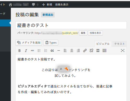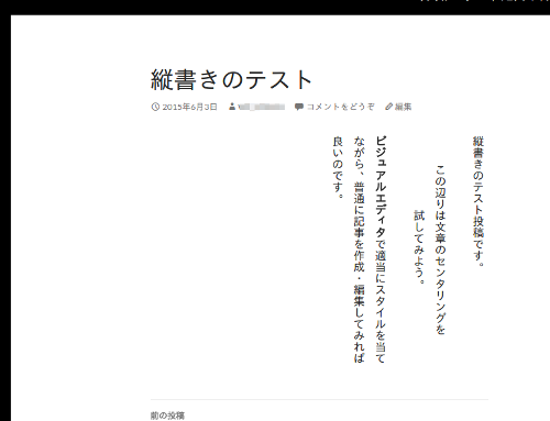 WordPress でとりあえず投稿記事本文を縦書きにしたい場合は、